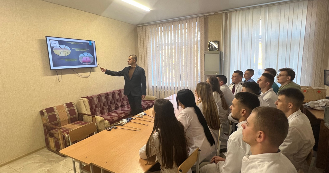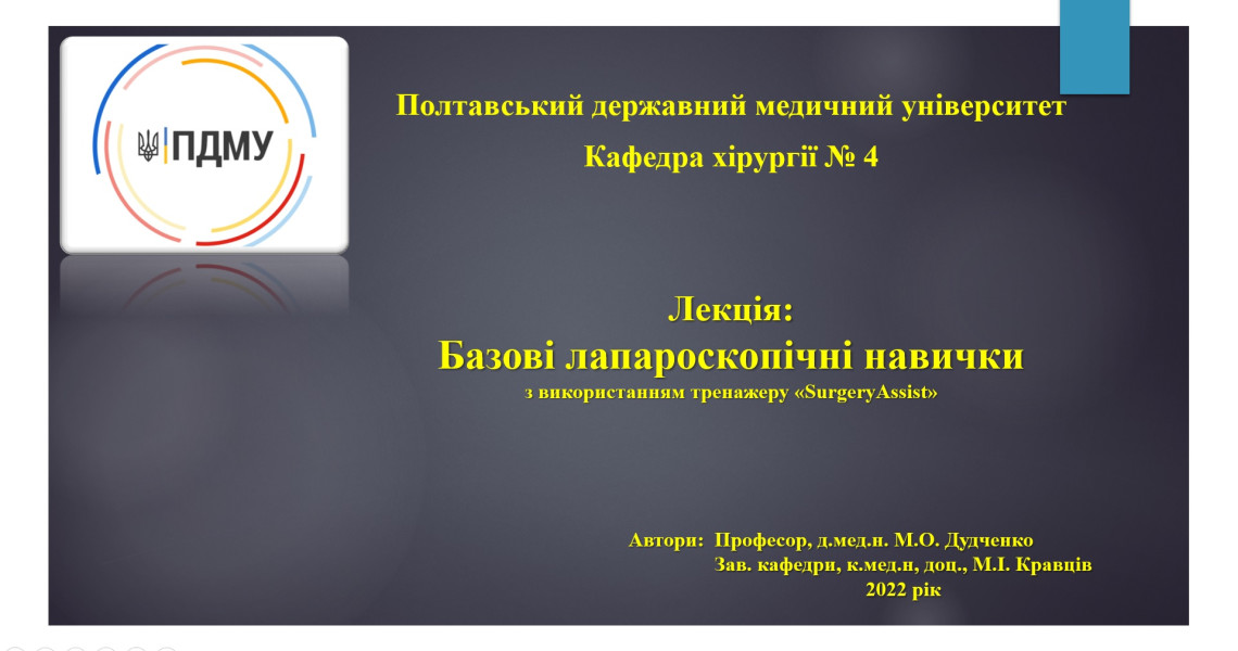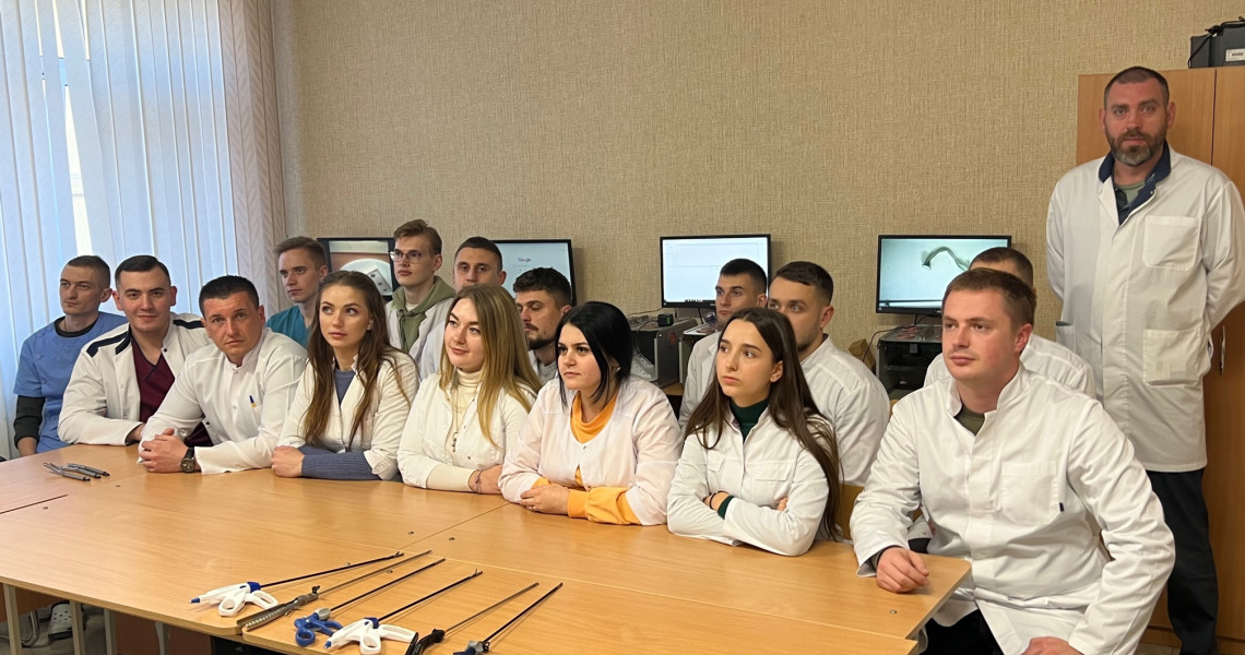 Завідувач кафедри М.І. Кравців прочитав лекцію, розроблену спільно з професором Дудченко М. О. з оволодіння базовими лапароскопічними навичками, де висвітлив порядок опанування, технічні моменти та корисні поради. Після цього під керівництвом викладачів кафедри лікарі-інтерни практикувалися у самостійному виконанні хірургічних завдань на спеціальних тренажерах «SurgeryAssist», які розроблені та запатентовані співробітниками кафедри і виготовлені коштом університету. Вони дозволяють відпрацьовувати навички як з використанням штучних умов, так і на біологічному матеріалі для максимальної імітації роботи з живими тканинами.