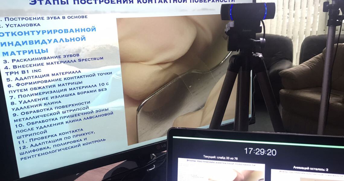7 травня 2020 року на клінічній базі кафедри післядипломної освіти лікарів-стоматологів асистент Ксенія Лазарєва провела онлайн вебінар «Відновлення контактних поверхонь зубів» для лікарів-інтернів, слухачів циклів підвищення кваліфікації, широкої аудиторії.