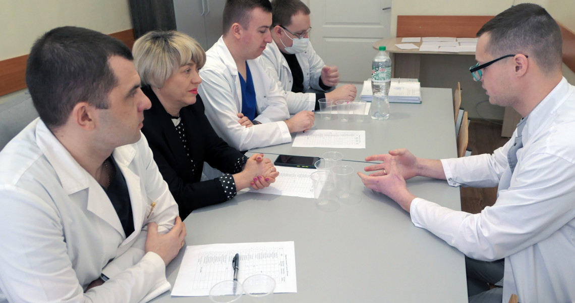 Комісія у складі заступника директора Навчально-наукового інституту післядипломної освіти, доцента Ганни Давиденко, завідувача кафедри, доцента Миколи Кравціва та співробітників кафедри оцінювали практичну та теоретичну підготовку лікарів, що закінчили освітню частину навчання на 1-му році.