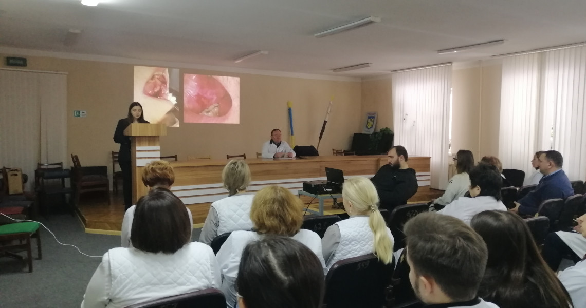 На кафедрі післядипломної освіти лікарів-стоматологів відбулася клінічна конференція, на якій лікарі - інтерни представили 10 доповідей про складні клінічні випадки, що викликають проблеми в діагностиці та лікуванні на прийомі. Особливу цікавість викликали презентації лікарів- інтернів Хлєбутіна Віталія, Авєтікова Георгія, Чеботарьової Єлизавети, Саприкіної Марини. Професор Таїсія Скрипнікова звернулася зі словами заохочення та подяки за проведену роботу до лікарів-інтернів і їхніх викладачів - керівників науковими роботами.