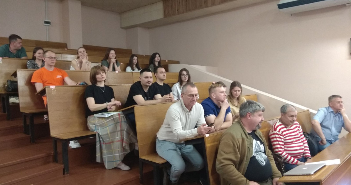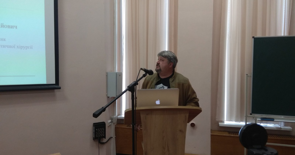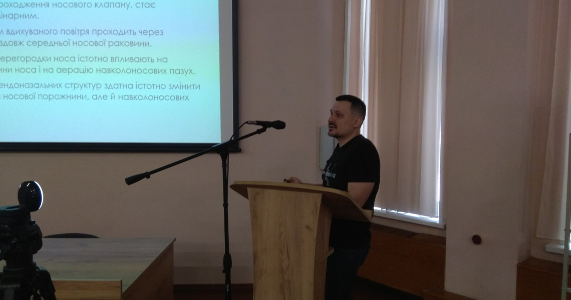 З презентацією клінічного випадку віступив пластичний хірург Володимир Таран, що в своїй доповіді розглянув техніку виконання ринопластики на клінічному випадку з детальними коментарями. Також були представлені доповіді наукових працівників кафедри оториноларингології з офтальмологією к. мед. н. Наталії Соннік та к. мед. н. Андрія Лобурця.