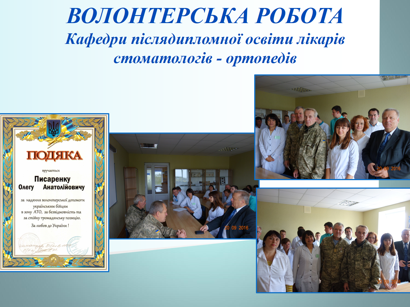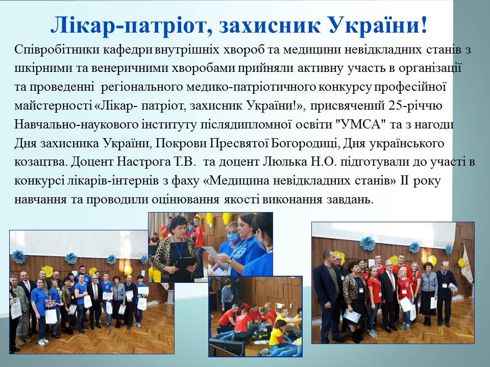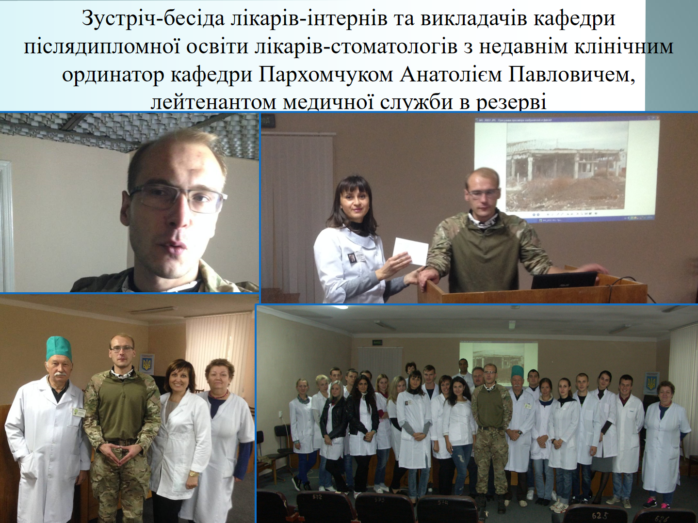 До Дня захисника Вітчизни, українського козацтва, Покрови Пресвятої Богородиці на кафедрі післядипломної освіти лікарів-стоматологів проведено комунікативно-виховний захід для лікарів-інтернів, лікарів-курсантів суміжних кафедр післядипломної освіти лікарів-ортодонтів та ортопедів.