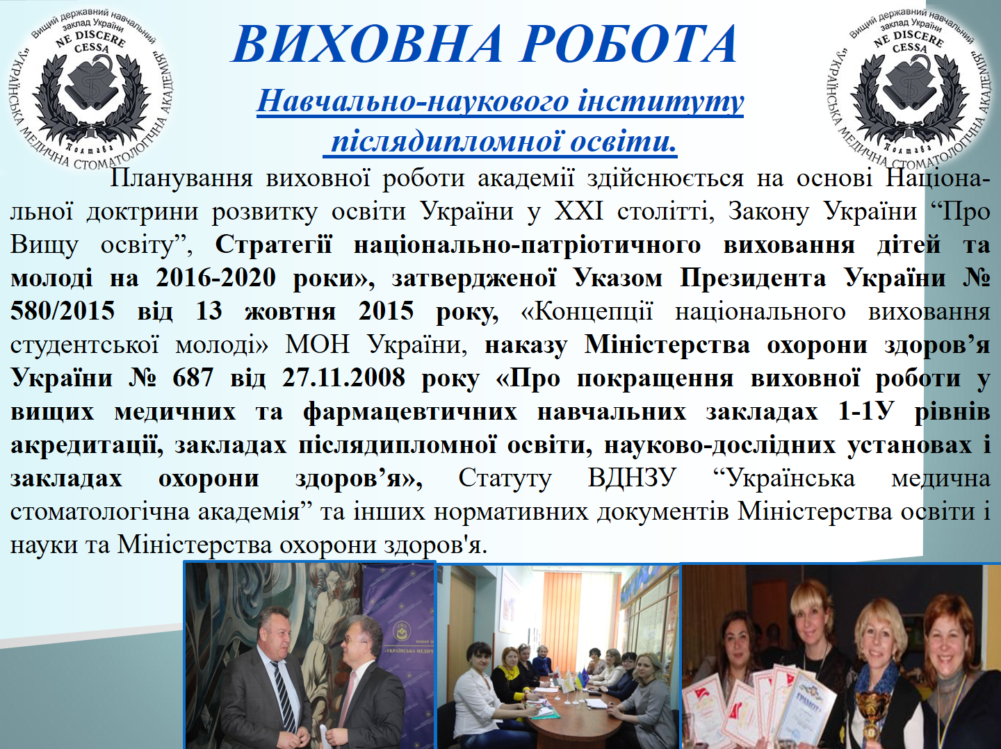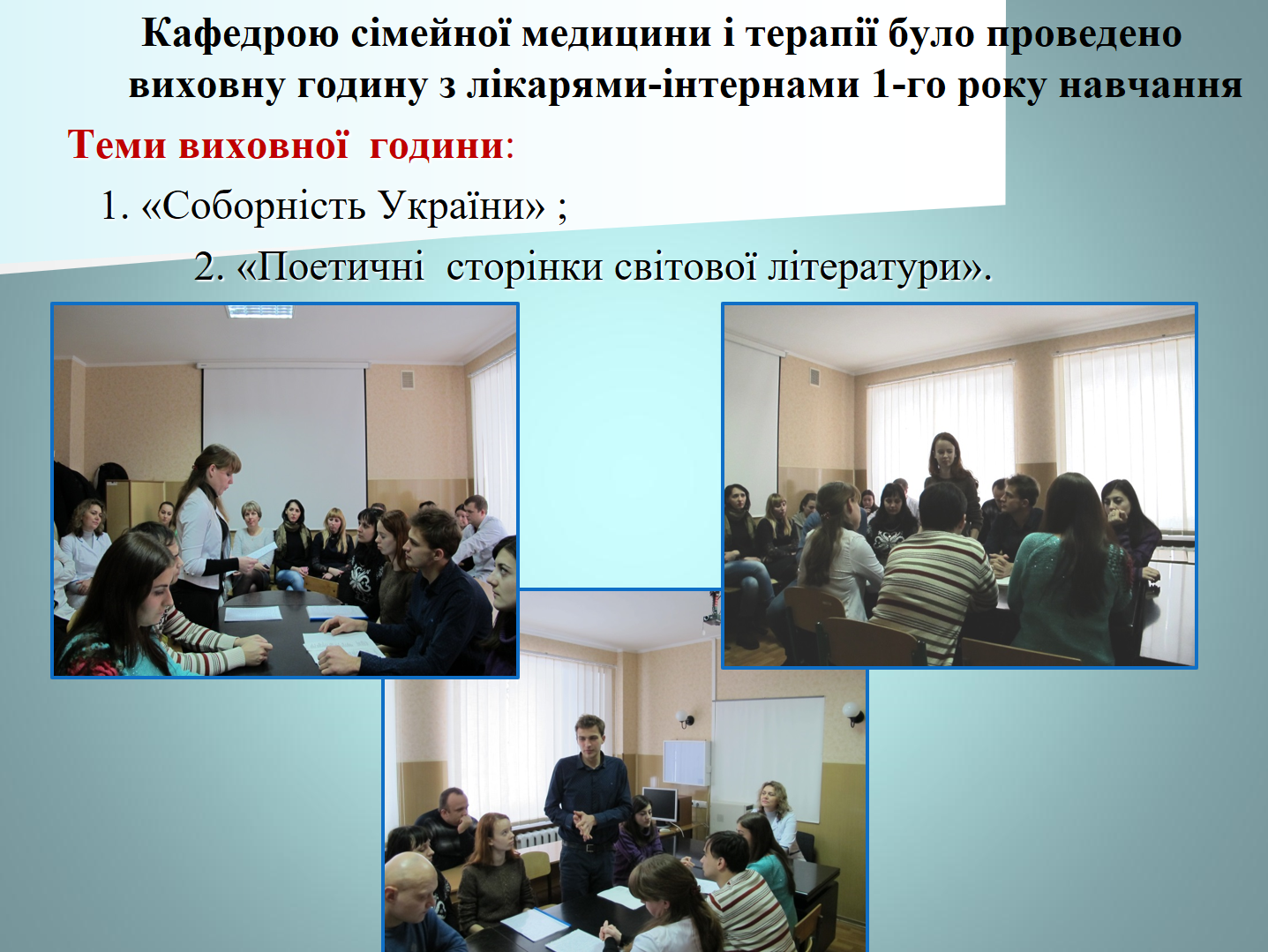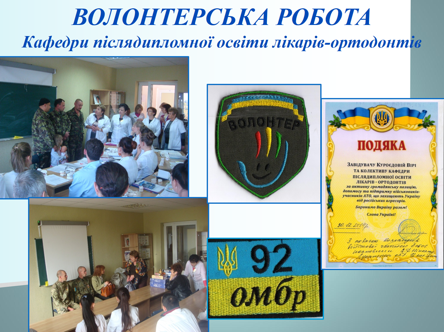 До Дня захисника Вітчизни, українського козацтва, Покрови Пресвятої Богородиці на кафедрі післядипломної освіти лікарів-стоматологів проведено комунікативно-виховний захід для лікарів-інтернів, лікарів-курсантів суміжних кафедр післядипломної освіти лікарів-ортодонтів та ортопедів.