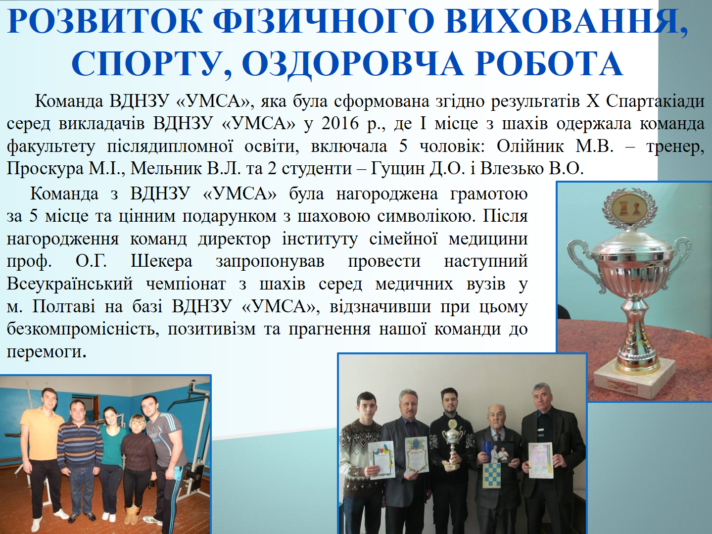 асистент Казакова К. С. - шахи ( 1 місце),