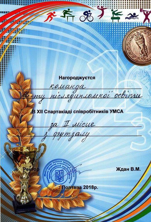 Збірна навчально-наукового інституту післядипломної освіти презентувала команди з 9 видів спорту. В змаганнях взяли участь більш як 30 учасників. За підсумками Спартакіади наш колектив виборов почесне Друге загально командне місце.