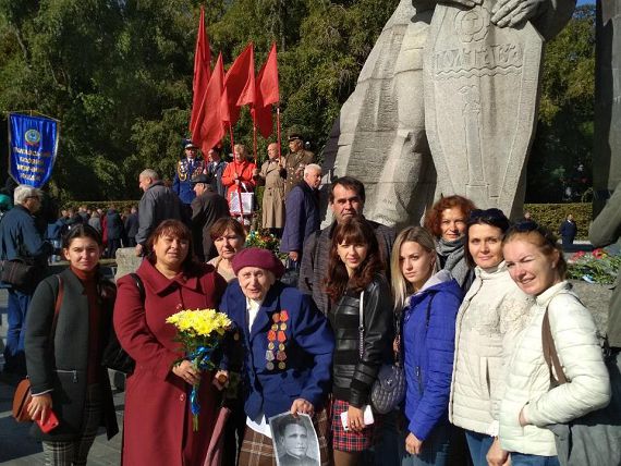 Співробітники привітали заслуженого педагога Голобородько Антоніну Мартинівну, яка з першого до останнього дня була на війні. Антоніна Мартинівна поділилась фронтовими спогадами, розповіла як в 1941році втратила батька. Його фото вона принесла з собою на свято.