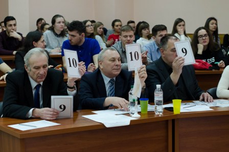 Відповіді учасників усного відбіркового туру оцінювали: завідувач кафедри ортопедичної стоматології з імплантологією, професор Дворник В.М., завідувач кафедри терапевтичної стоматології, професор Петрушанко Т.О., завідувач кафедри дитячої терапевтичної стоматології з профілактикою стоматологічних захворювань, професор Каськова Л.Ф., завідувач кафедри ортодонтії, професор Смаглюк Л.В., завідувач кафедри дитячої хірургічної стоматології з пропедевтикою хірургічної стоматології, професор Ткаченко П.І., завідувач кафедри пропедевтики терапевтичної стоматології, професор Ткаченко І.М., завідувач кафедри пропедевтики ортопедичної стоматології. Професор Король Д.М.