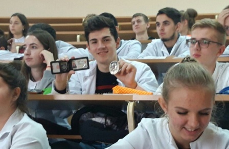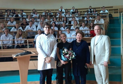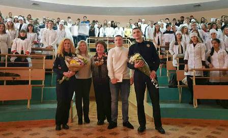 Студенти проводжали гостя гучними оплесками, віддячили великою кількістю квітів, а перша група третього курсу стоматологічного факультету привітали Валерія зі святом тортом і на згадку про стоматологів подарували подарунки.