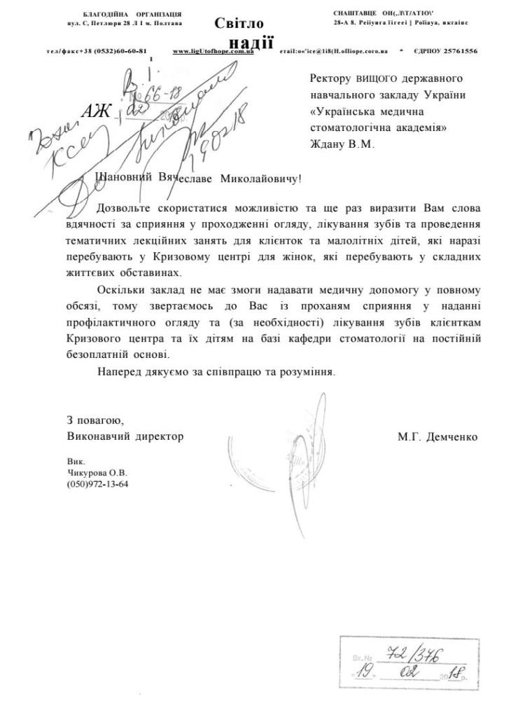 З повагою - декан стоматологічного факультету А.І. Сидорова.
