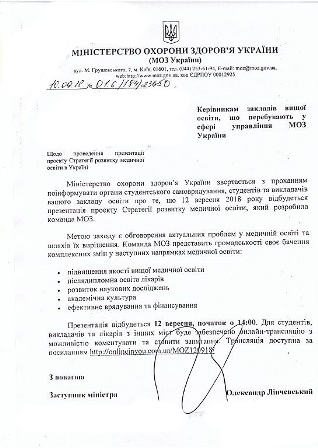 ПРЕЗЕНТАЦІЯ ПРОЕКТУ СТРАТЕГІЇ РОЗВИТКУ МЕДИЧНОЇ ОСВІТИ