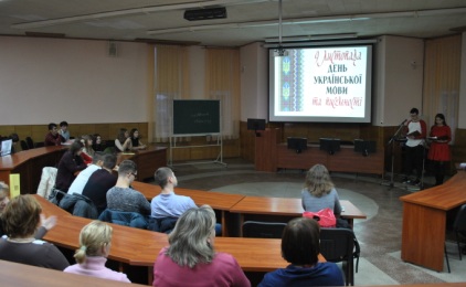 З привітальним словом виступила завідувачка кафедри, доцент Лещенко Т.О. Впродовж усього вечора зі сцени лунала українська проза, поезія та пісні у виконанні як вітчизняних студентів, так і студентів-іноземців.