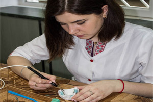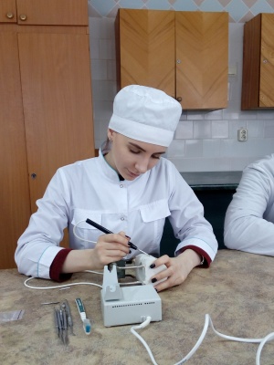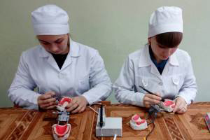 Students of the college study the technique of manufacturing modern metal-ceramic dentures, orthodontic devices, clasp prostheses, maxillofacial structures.
