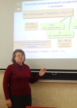 Викладач хімії Сизоненко Н.В. провела майстер – клас «Використання ілюстрацій у презентаціях до лекцій з хімії». Майстер поділилася із молодими викладачами власною системою роботи, продемонструвала різні аспекти використання наочності на лекційних заняттях, довела, що візуалізація через образне сприйняття поглиблює розуміння та запам'ятовування студентами навчального матеріалу.