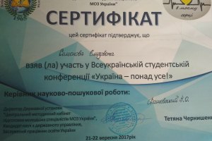 УЧАСТЬ У ВСЕУКРАЇНСЬКІЙ СТУДЕНТСЬКІЙ НАУКОВО-ПРАКТИЧНІЙ КОНФЕРЕНЦІЇ