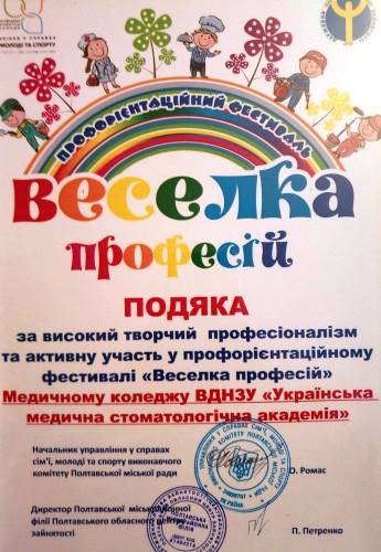 28 лютого 2018 року в Міському Будинку культури відбувся профорієнтаційний фестиваль «Веселка професій», організований управлінням у справах сім’ї, молоді та спорту виконкому Полтавської міської ради, Полтавською міськрайонною філією Полтавського обласного центру зайнятості та управлінням освіти.