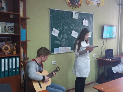 Студенти та викладачі 29 березня зібралися на літературні посиденьки «А дні бувають різні...», де відбулася презентація збірки творчого доробку літгуртківців "Поетичний щоденник" (викладач ¬ Н.В.Бондар). Поезія, тепла, дружня атмосфера, мелодія гітари подарували незабутні враження всім присутнім.