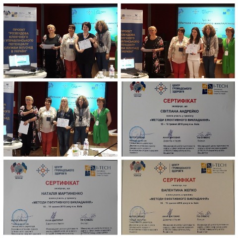 У рамках «Меморандуму про взаєморозуміння щодо освітньої, наукової і культурної співпраці» між Університетом штату Вашингтон та медичним коледжем академії 15-18 травня представники медичного коледжу взяли участь у тренінгу «Методи ефективного викладання», який проводився у співпраці I-TECH та Центру громадського здоров’я МОЗ України на базі конгрес – центру «Пуща» м. Київ.