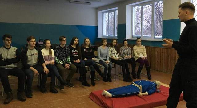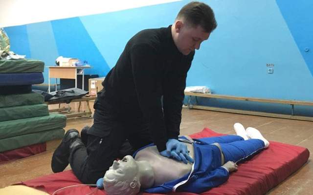 На цьому тренінгу Володимир Величко розповів студентам про серцево-легеневу реанімацію, правила накладання джгутів та надання допомоги при відкритих ранах.