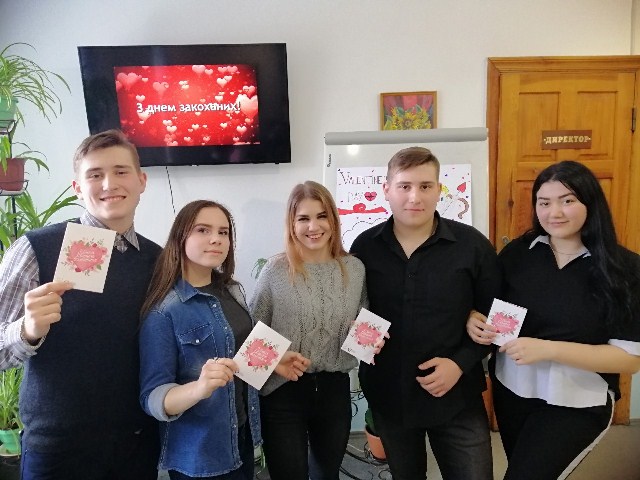 Також студенти вітали перехожих із днем закоханих. Вони дарували щирі посмішки і, звичайно ж, валентинки із найтеплішими побажаннями. Кожен, хто отримував привітання, бувдуже здивований, адже зовсім незнайомі, чужі люди змогли передати тепло люблячих сердець та донести те, що кохання та увага змінюють світ.