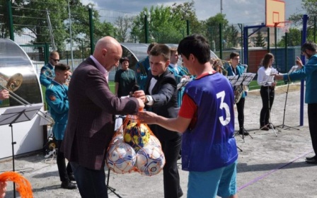 Ректор УМСА В. М. Ждан привітав всіх зі значною подією у спортивному житті академії і висловив надію, що спортивних досягнень відтепер ще побільшає, так само як збільшиться і число прихильників здорового способу життя. Для цього в академії створено всі умови. Почесні гості окрім теплих слів добрих побажань , як і годиться на святі, вручили ще всім присутнім командам іноземних студентів, учасників II -го Міжнародного турніру з міні-футболу, по набору футбольних м`ячів. Фейєрверк завершив Урочистості, а перший м`яч, введений у гру на новому футбольному полі ректором академії В.М.Жданом ознаменував новий етап у спортивному академічному житті!