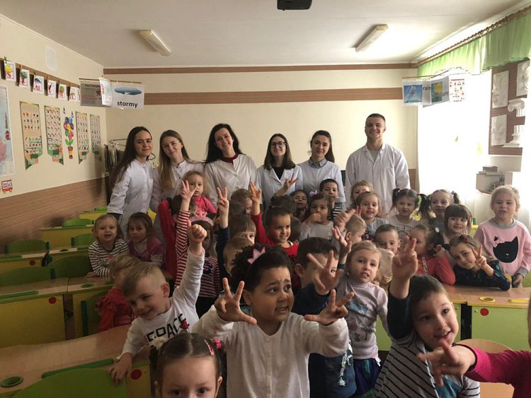 На чолі з асистентом кафедри Павленковою О.С. студенти 12 групи 3 курсу стоматологічного факультету (Гавриш Вікторія, Козак Дмитро, Левченко Руслана, Свідельська Анастасія, Шклярук Євгенія) організували профілактичну групу «Здорова посмішка» та провели свої перші цікаві та пізнавальні уроки для дітей середніх та старших груп.