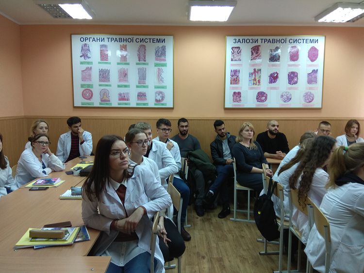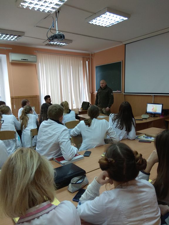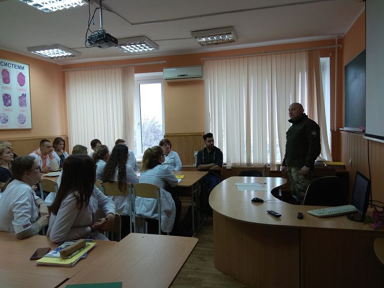 На кафедрі гістології, цитології та ембріології УМСА відбулась відкрита виховна година. На ній головний лікар Полтавського обласного психоневрологічного диспансеру, воїн строкової служби у зоні ООС, В.А. Волошин розглянув проблему посттравматичного синдрому у воїнів, які перебували у зоні бойових дій та адаптації їх до мирного життя.