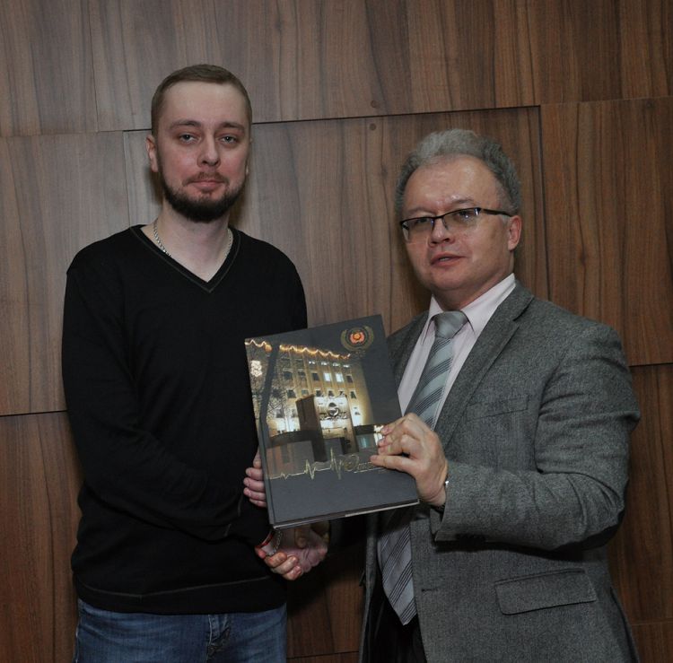 На прощання проректор з науково-педагогічної роботи та післядипломної освіти, професор І.М. Скрипник подарував колишньому випускнику УМСА, учаснику Євромайдану та ООС на згадку книгу про історію Академії «Одкровення».