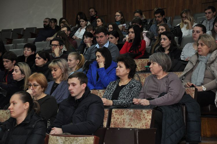 Зала у скорботному мовчанні переглянула документальний фільм, присвячений загиблим Героям Небесної Сотні. На екрані одне за одним пропливали на тлі небесної височини портрети тих, хто під час кривавих подій на Майдані загинув п’ять років тому… Хвилиною мовчання вшанували пам’ять загиблих Героїв. Проректор з науково-педагогічної роботи та післядипломної освіти, професор І. М. Скрипник звернувся до присутніх з промовою: «Давайте не забувати про тих, хто пожертвував своїм життям задля незалежності і свободи України.!” А директор навчально-наукового інституту післядипломної освіти доцент А. В. Марченко сказала: «Ми пишаємось, тим, що у ті тривожні дні на Євромайдані і в ООС був і наш випускник, молодий лікар Юрій Нужний. Його вчинок може бути взірцем справжнього лікаря, громадянина, патріота своєї держави».