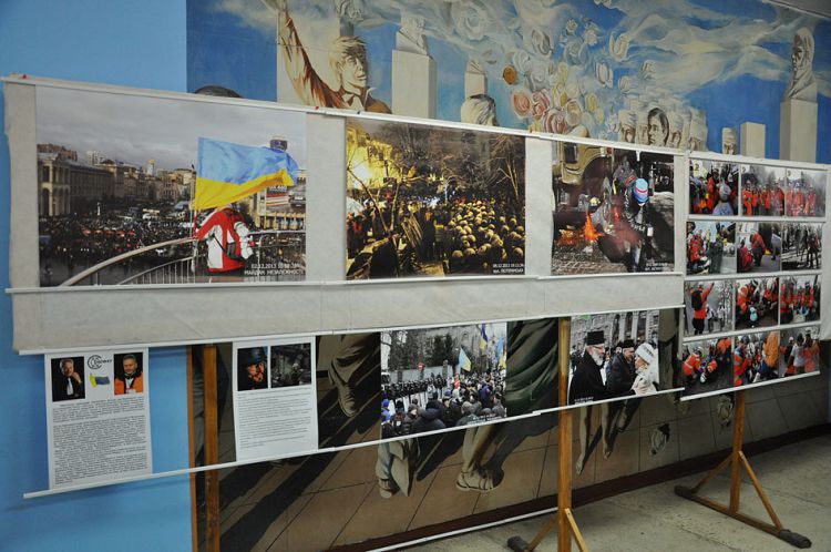 Сто світлин з місця буремних подій вмістила в собі фотовиставка. На деяких з них — і відомі полтавці, серед яких голова Полтавської ОДА Валерій Головко та волонтер Руслан Рогов.