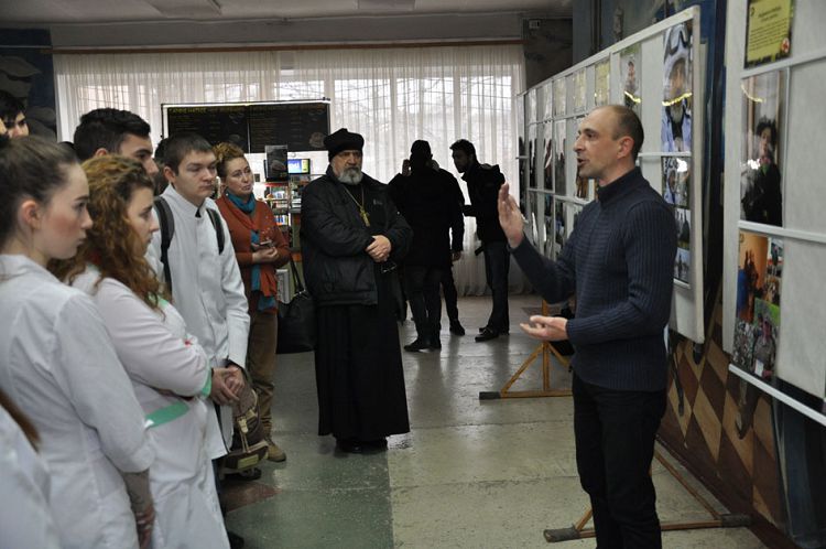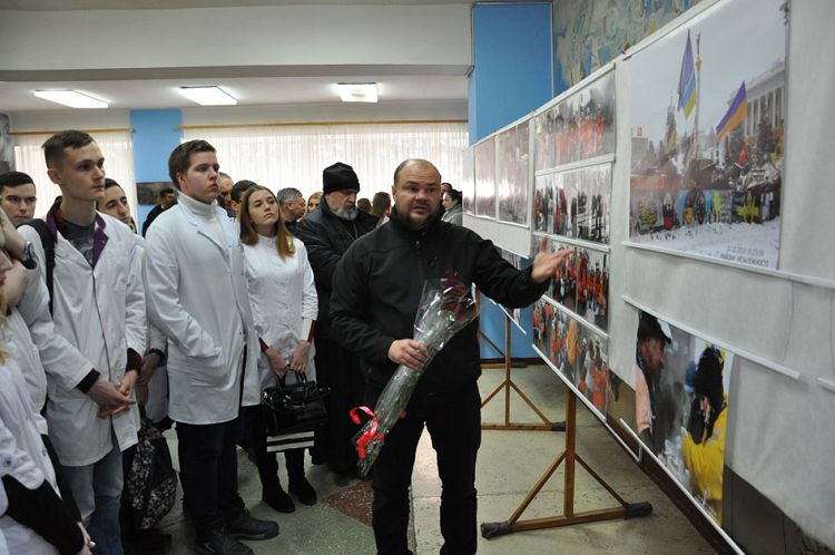 «Фотовиставка, безперечно, має великий суспільний резонанс. На студентів Академії вона також справила незгладиме враження, адже на таких зустрічах вони формують власне ставлення до майбутньої роботи лікаря, до Батьківщини, до свого обов’язку патріота і військовозобов`язаного громадянина», — зазначив учасник ООС, голова Ради ветеранів УМСА, Віктор Лєбєдєв.