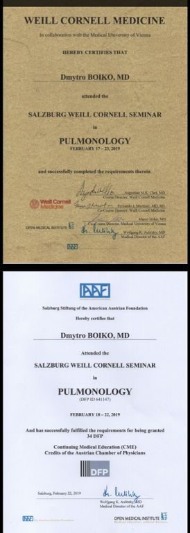 Завідувач кафедри фізичного виховання та здоров'я, фізичної реабілітації, спортивної медицини, доктор медичних наук, доцент Бойко Д.М. пройшов стажування за програмою Зальцбургських медичних семінарів Відкритого медичного інституту – Американо-Австрійський Фонд (м. Зальцбург, Австрія), за темою «Pulmonology». Виступив з доповіддю, що була присвячена проблемам саркоїдозу легень: «Lung sarcoidosis in the pediatric age with pronounced bronchial obstruction». Протягом навчання відбувся обмін інформацією, яку планується поширити серед профільних кіл спеціалістів, що працюють з паталогією органів дихання та студентів.