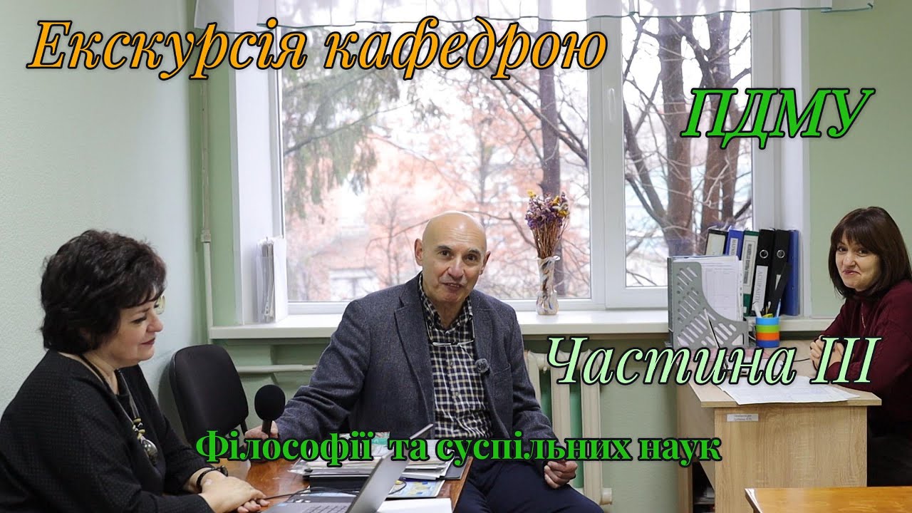 У третій частині відеоекскурсії ми спілкуємося з викладачами кафедри — людьми, які формують світогляд майбутніх медиків, навчають критично мислити, аргументовано відстоювати власну позицію та орієнтуватися в складних соціальних процесах.